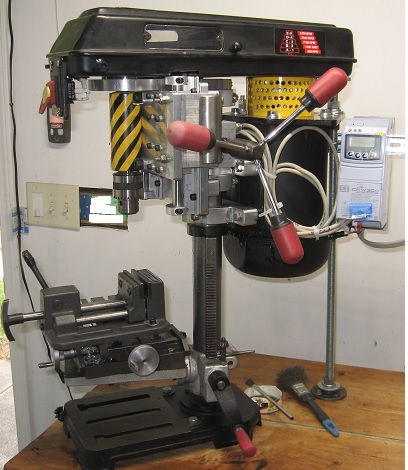Looking closely at the pic the motor has been upgraded to a 0.75hp WEG with VFD. The step drive pulleys have been retained.